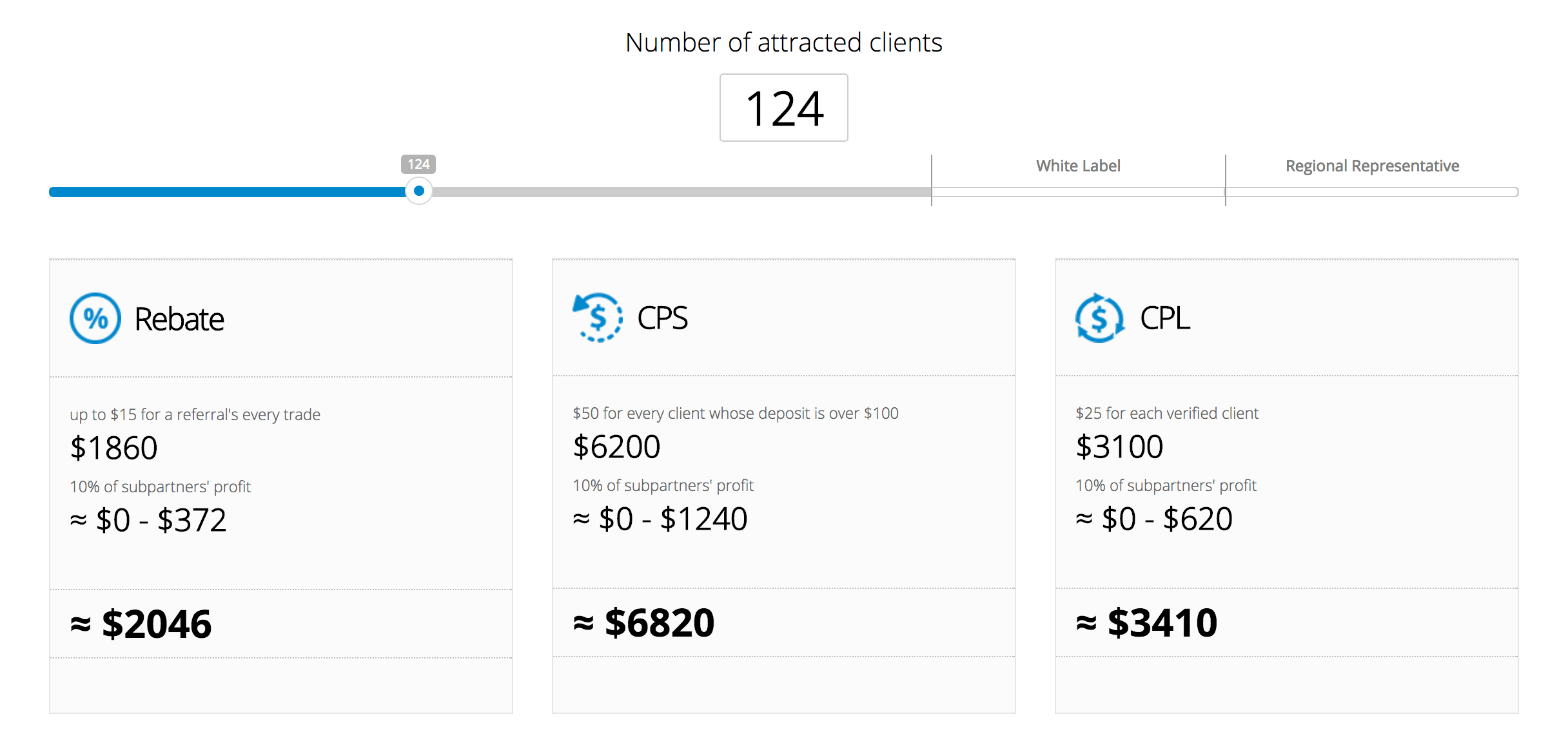 - 2 pips rebate of not more than $20 from each trade of your referral. Also, this includes 10% of the income earned by your sub-partners.